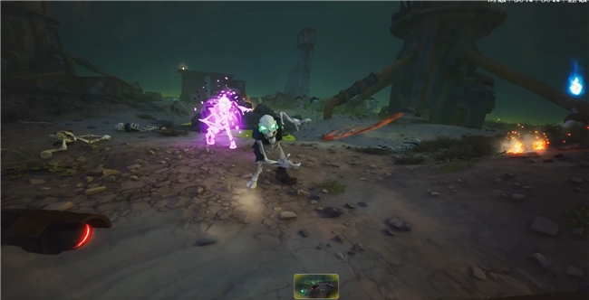 在《遥遥西土》中,玩家作为一个机械牛仔,骑着机械战马穿越被亡灵诅咒的西部荒野,一手左轮一手火球,接下镇上警长派发的赏金合同,深入矿井、沙漠与闹鬼峡谷猎杀各种不可名状的骷髅怪物。